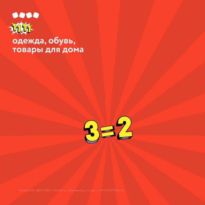 С 6 по 9 ноября 2025 года в Детском мире действует акция 3=2 на одежду, обувь и товары для дома. При покупке трёх товаров из ассортимента, участвующего в акции, вы получаете один из них с наименьшей ценой в подарок.
