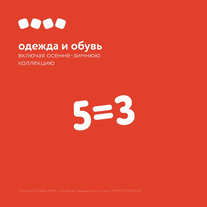 С 9 по 12 октября 2025 года в Детском мире действует акция 5=3 на одежду и обувь. При покупке пяти товаров из ассортимента, участвующего в акции, вы получаете два из них с наименьшей ценой в подарок.