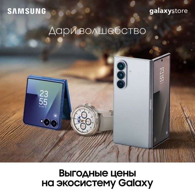 До 12 января 2026 года в фирменном магазине Samsung действуют выгодные предложения на весь ассортимент товаров. Телевизоры, смартфоны, планшеты, умные часы, наушники и аксессуары можно приобрести со скидками до 23%.